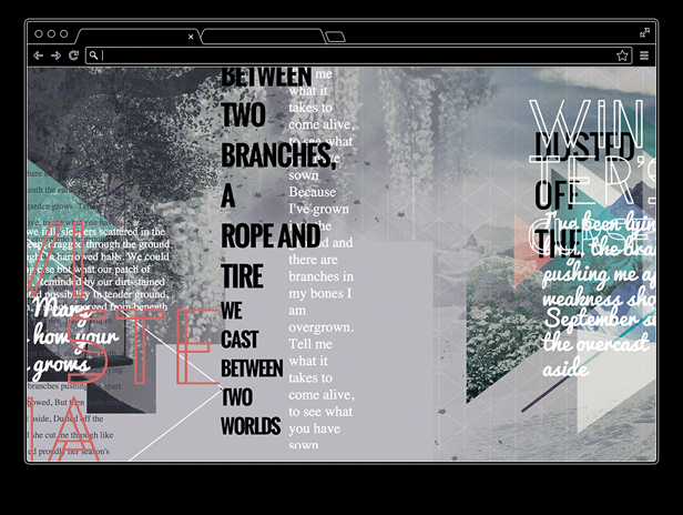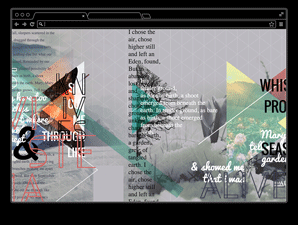 In this project, students are asked simply to build a visually dense but well organized digital collage. Intentionally vague, the students were given a page width suggestion and then shown examples of work by graphic designers Jan Van Toorn, Experimental Jetset, Aaron Draplin, Aesthetic Apparatus, or Marian Bantjes. These are the results.